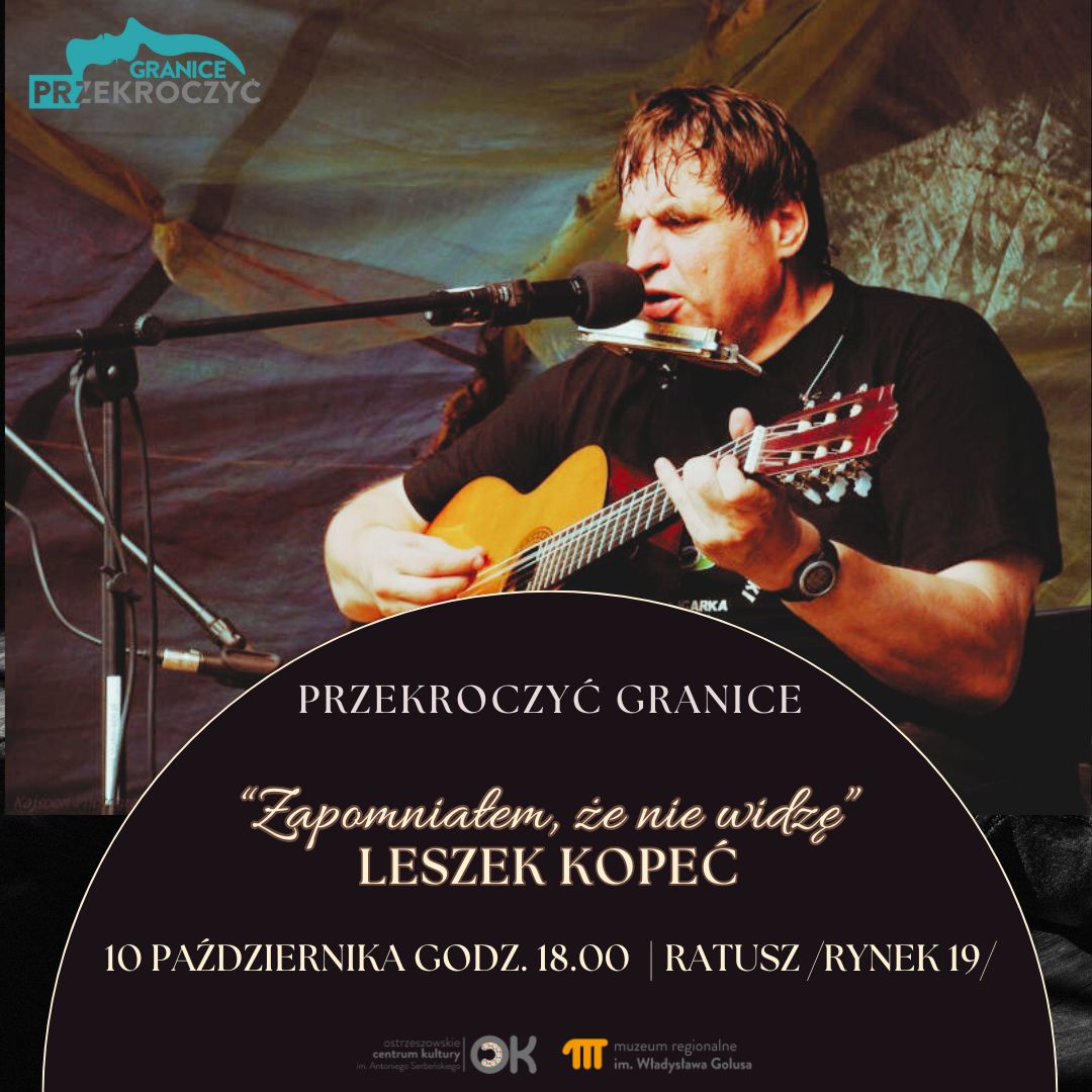 Tym razem o swoim przekraczaniu granic, na spotkaniu pod tytułem ZAPOMNIAŁEM, ŻE NIE WIDZĘ, które odbędzie się w piątek – 10 października b.r. o godz. 18:00 w sali reprezentacyjnej ostrzeszowskiego ratusza /I piętro/ opowie i zaśpiewa Leszek Kopeć.