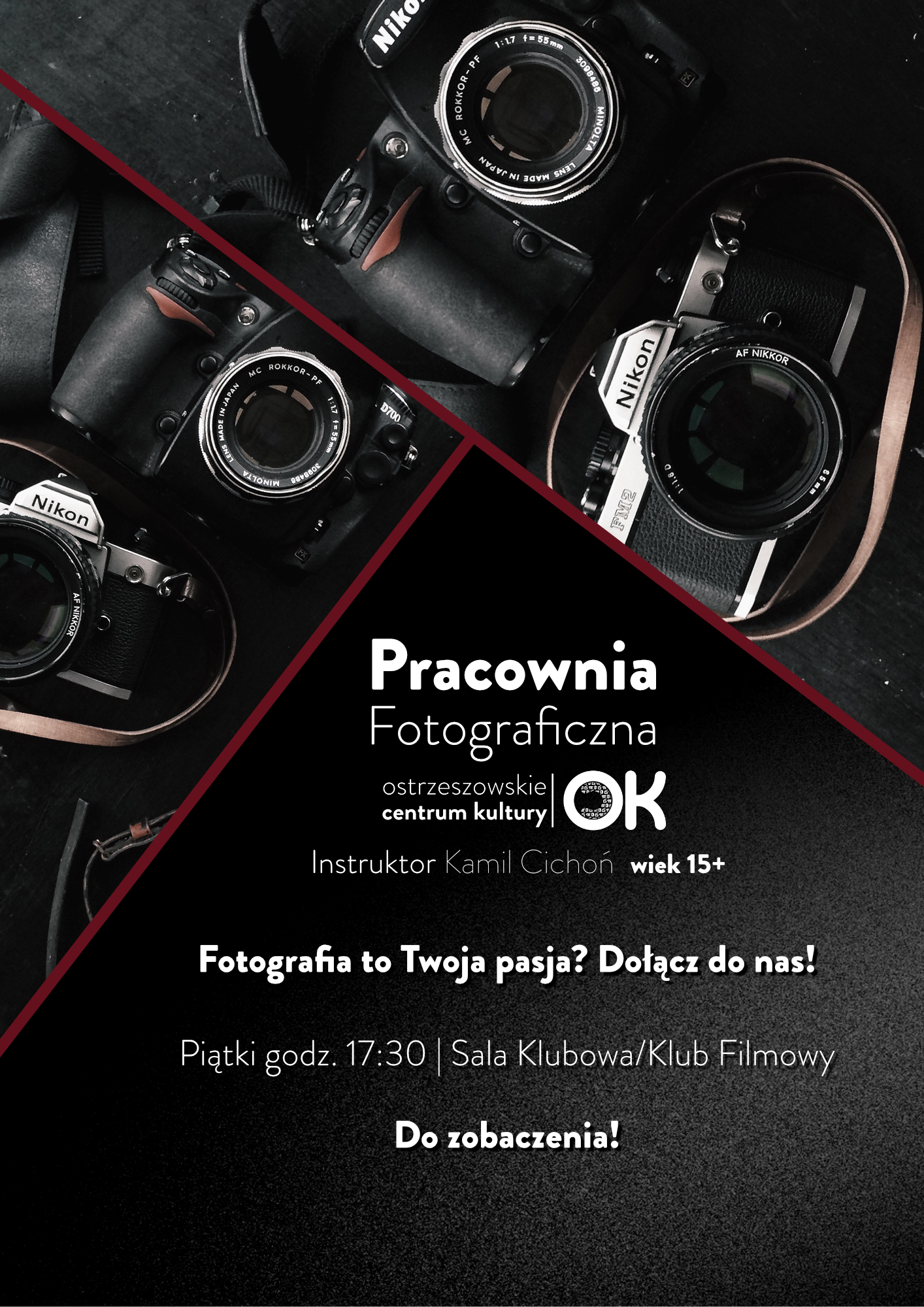 Dołącz do Pracowni Fotograficznej OCK, którą prowadzi niezawodny Kamil Cichoń – fotograf i instruktor z ogromnym doświadczeniem i świeżym spojrzeniem na sztukę obrazu.