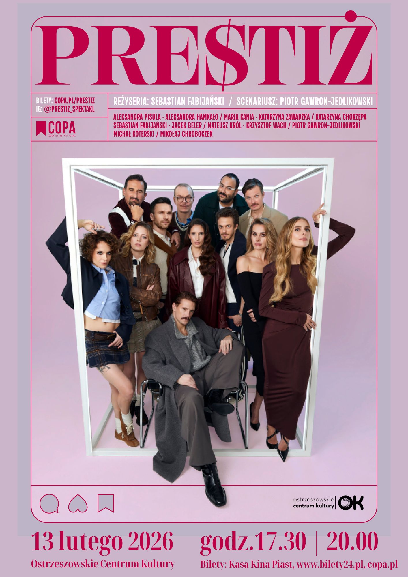 Luksus, skandale i śmiech do łez!  "Prestiż" to komedia o kulcie sukcesu – ostra jak brzytwa, błyskotliwa i pełna absurdów. Zobacz, co kryje się za maską perfekcji – zanim znikną szybciej niż egzotyczne wakacje bohaterów!